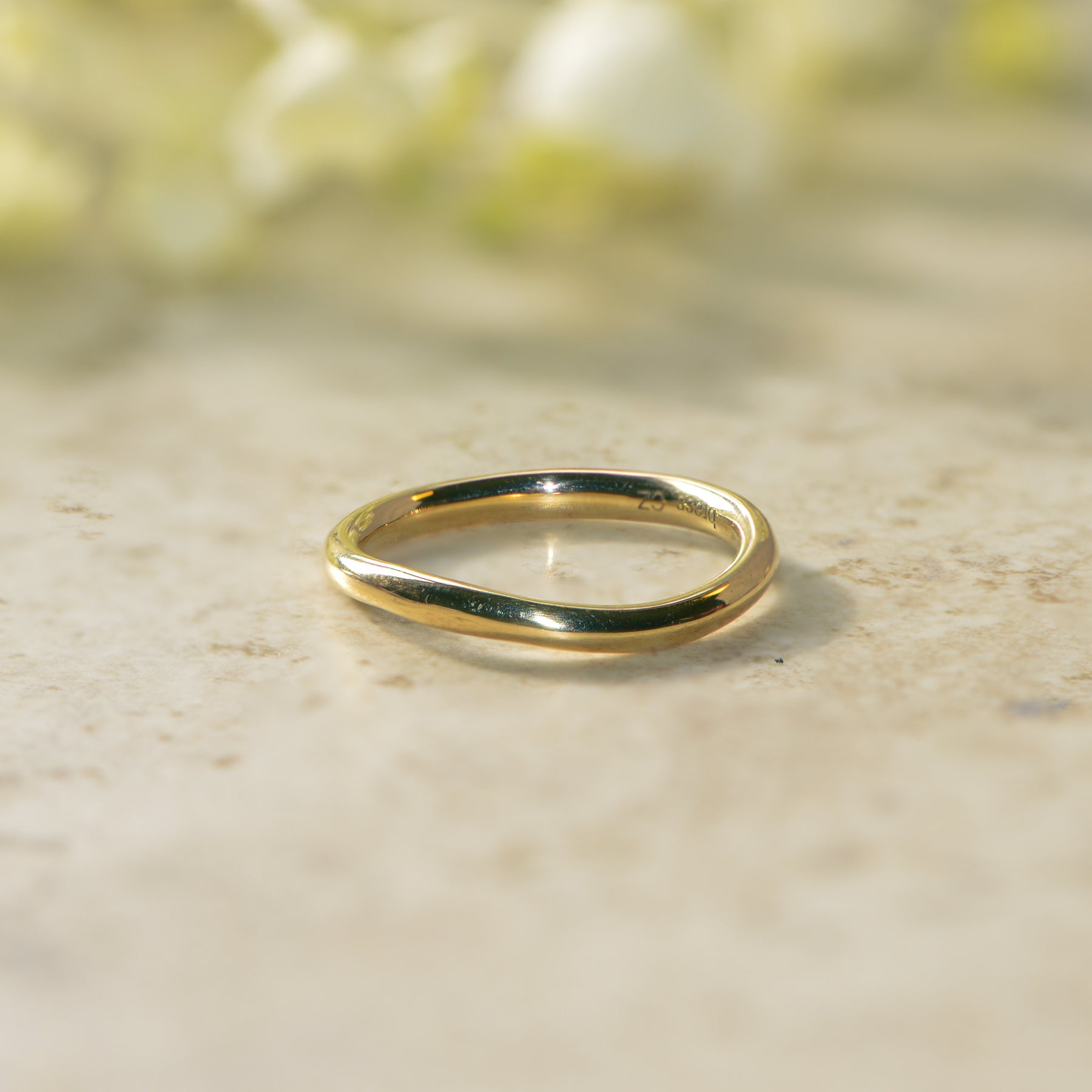 Inspired by the serene and continuous flow of a wave, this sublty curving wedding band is thoughtfully crafted to embrace your engagement ring. Named Keyn, the Cornish word for 'crest', this ring's design reflects the enduring strength of the ocean waves.
